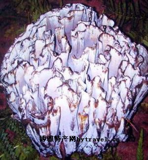 干巴菌是云南省特有的珍稀野生食用菌。学名:绣球菌,也叫对花菌、马牙菌等。它生长在滇中及滇西的山林松树间。产于七八月雨季,至今仍未实现人工养殖。其貌不扬,黑黑的带有一层白色。但味道却鲜香无比,是野生食用菌中的上品。用干巴菌炒青椒或炒鸡蛋,其味妙不可言。