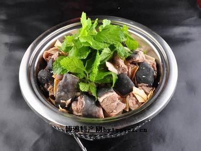 • 花山带皮羊肉是云南省曲靖市沾益县的特色美食。花山带皮羊肉,其实便是黄焖羊肉。做好的黄焖羊肉汤汁浓稠,色泽金黄,全无膻腥,香辣柔韧,舒适可口。