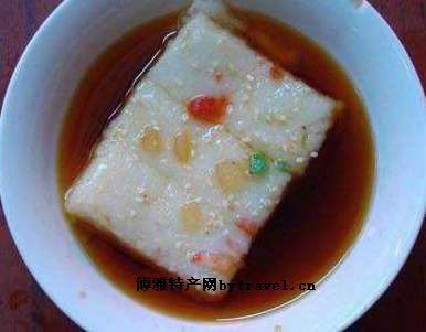 • 凉糕   通海的凉糕可以算得上一绝了。用糯米制成的凉糕本来没什么特别,但加上蜜饯、红糖水、芝麻等辅料